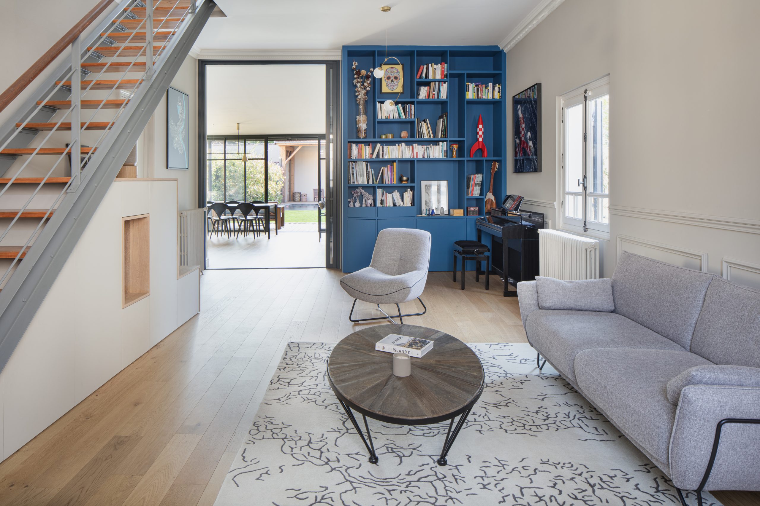 Quelques détails d’origine, comme les moulures, sont conservés en clin d’œil au passé.