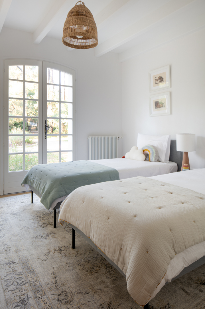 Les tons pastels et doux instaurent une atmosphère apaisée, entre modernité subtile et héritage architectural.