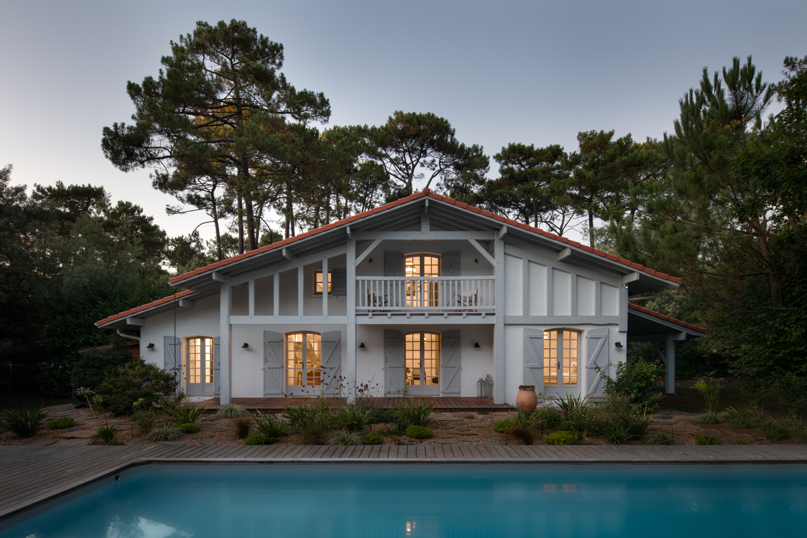 Le projet trouve un équilibre harmonieux entre confort actuel et respect des codes traditionnels landais.