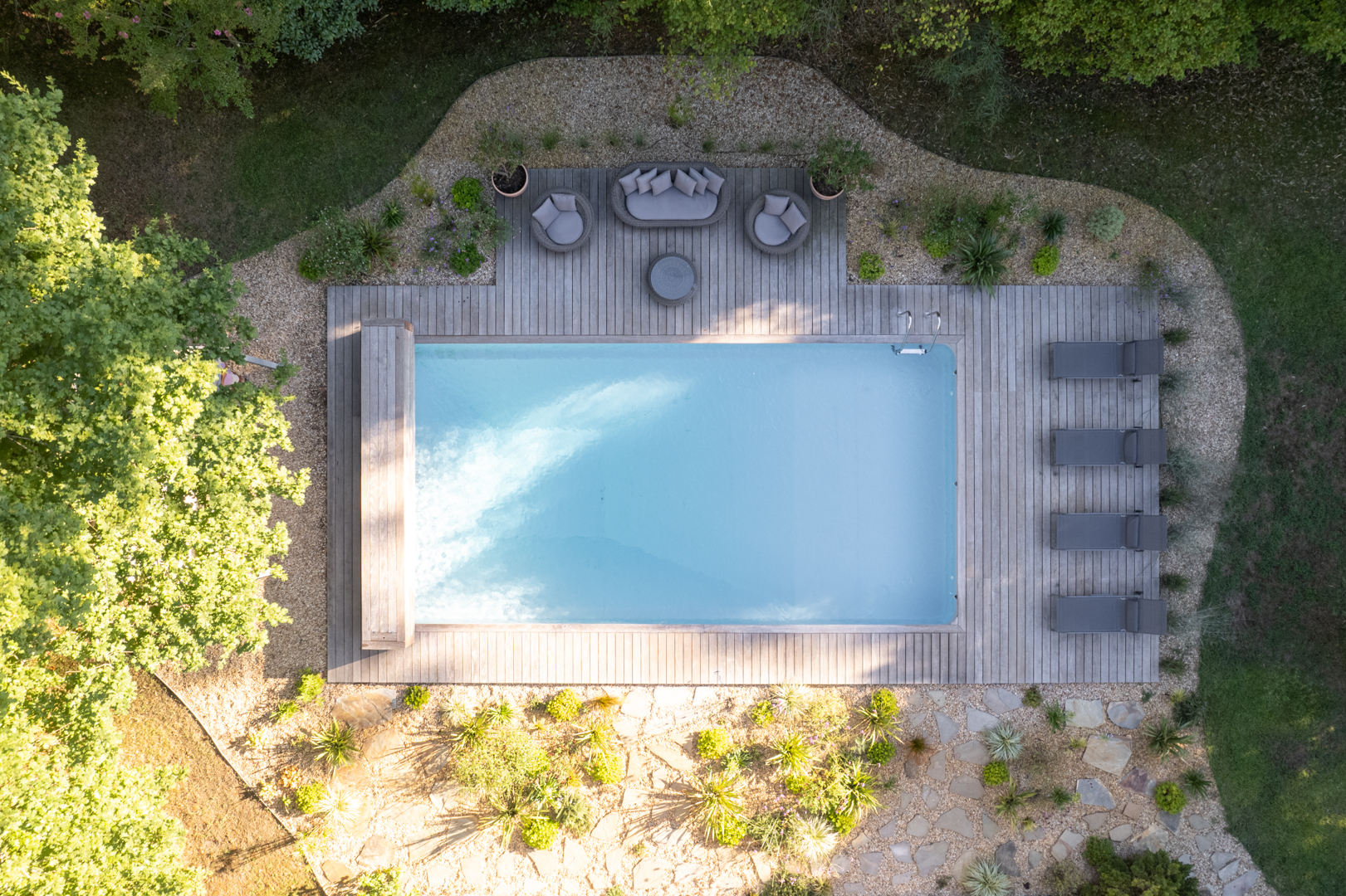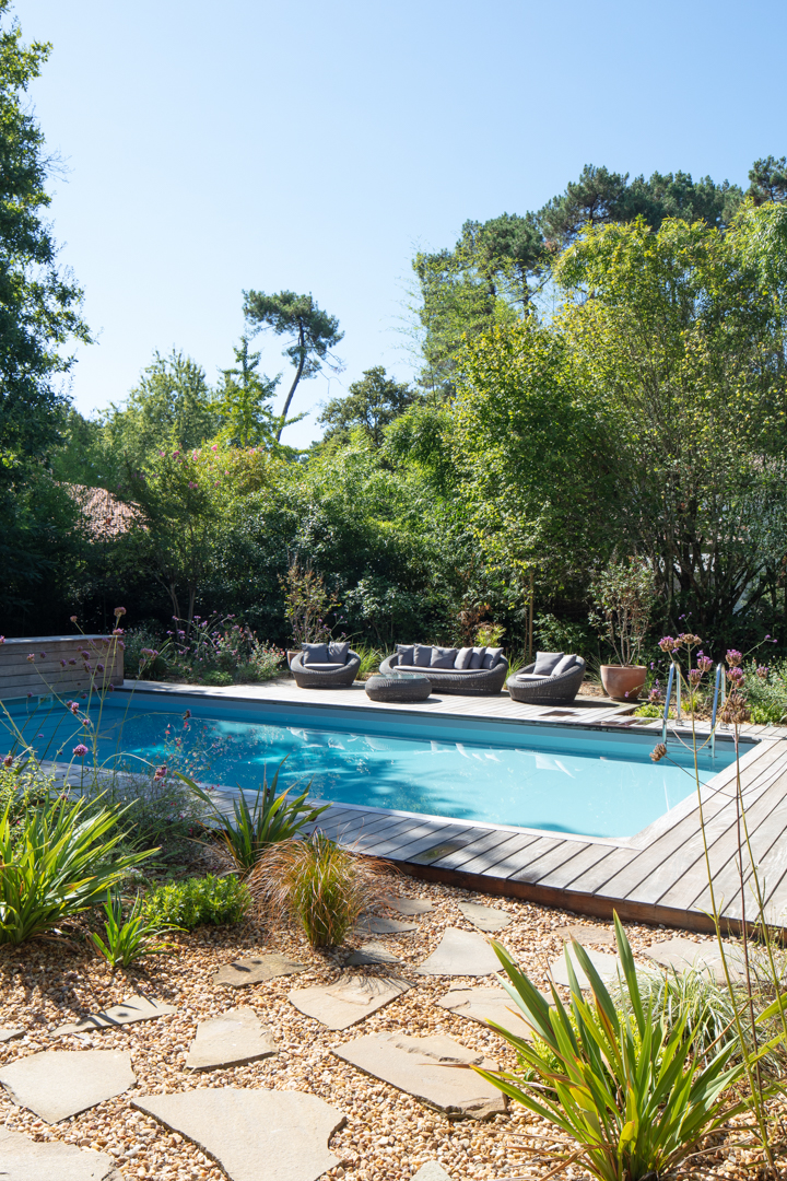 Rénovation d’une maison landaise traditionnelle réinterprétée dans une ambiance contemporaine et raffinée.