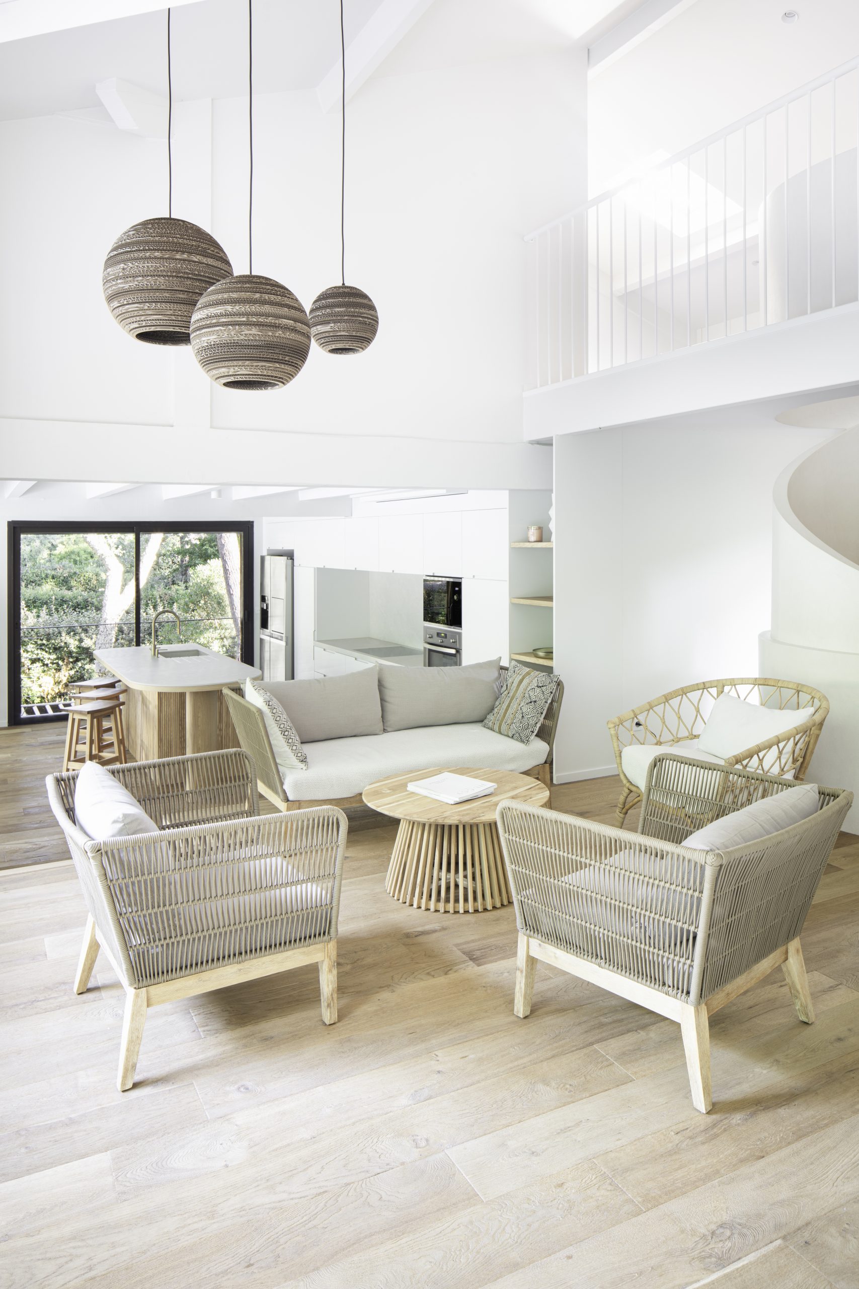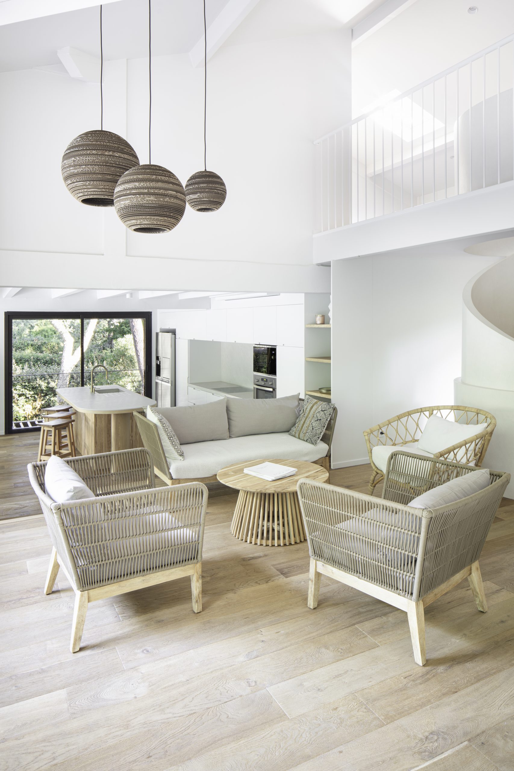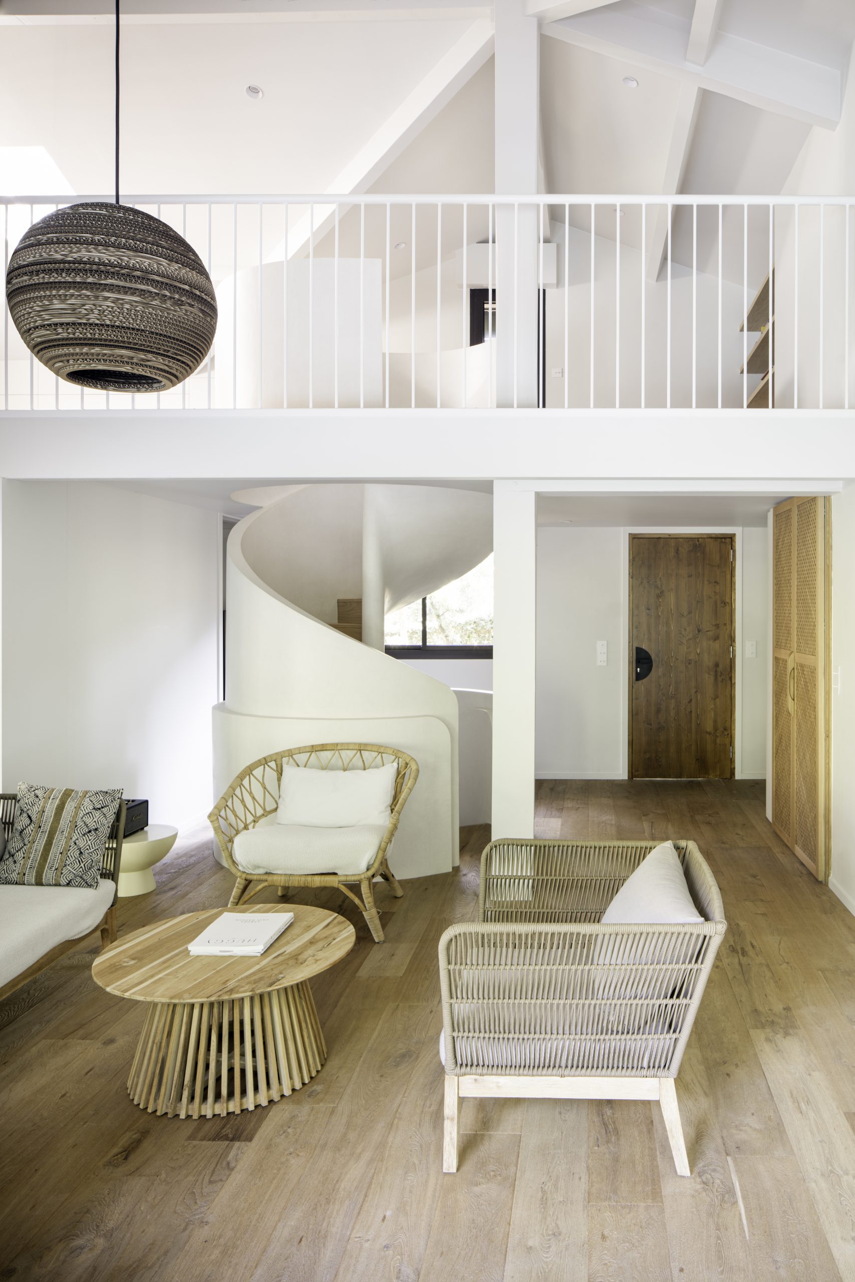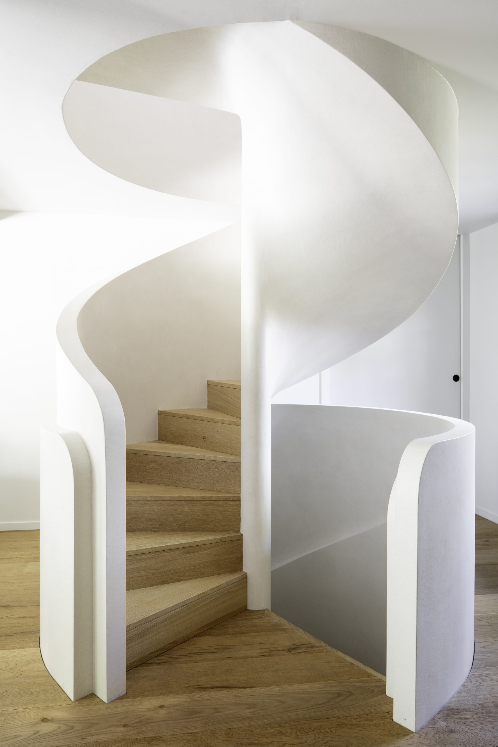 Rénovation complète d’une maison repensée pour intégrer les espaces de vie autour d’un escalier central sculptural, véritable pièce maîtresse du projet.