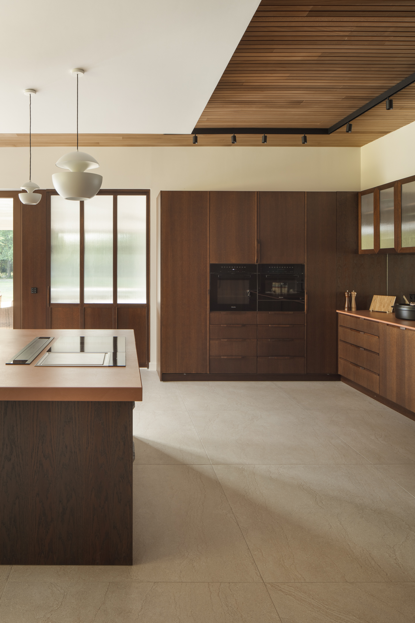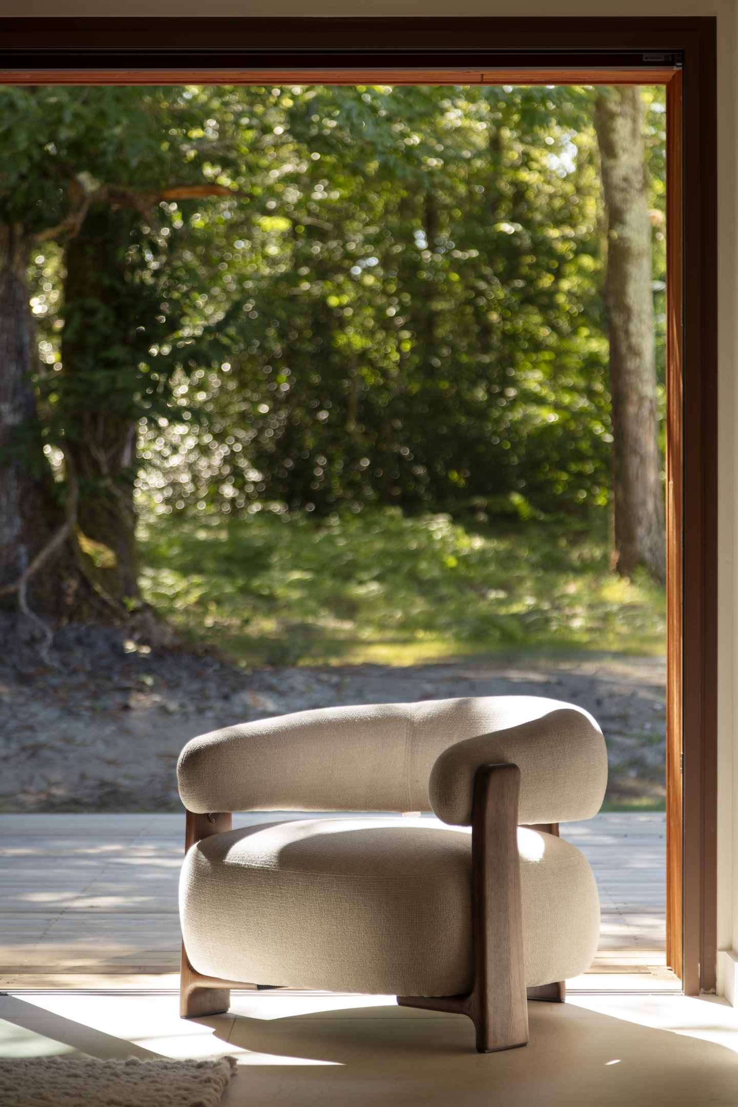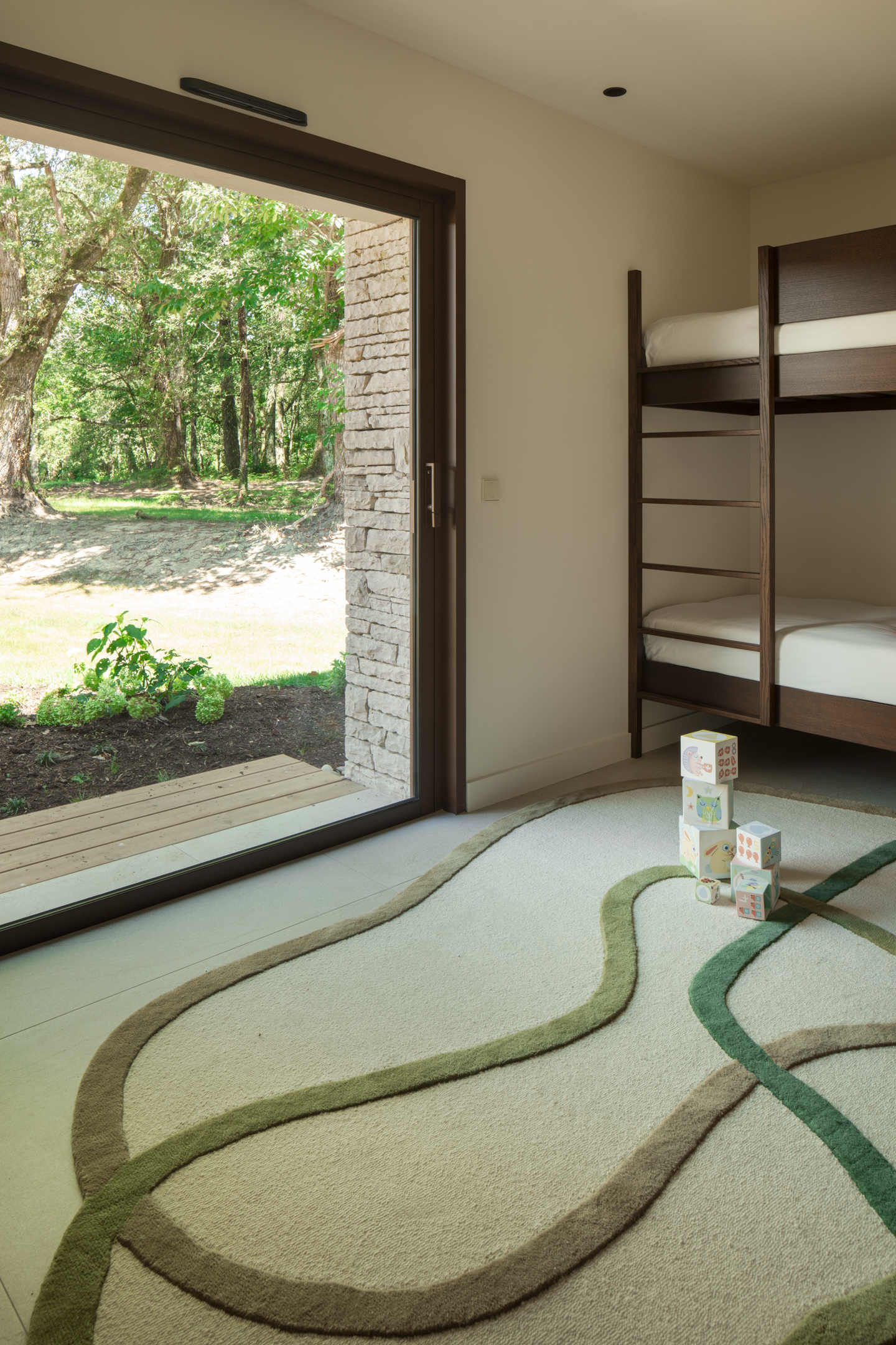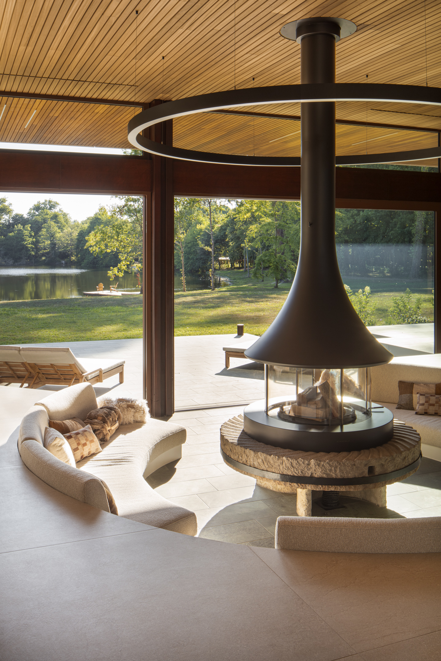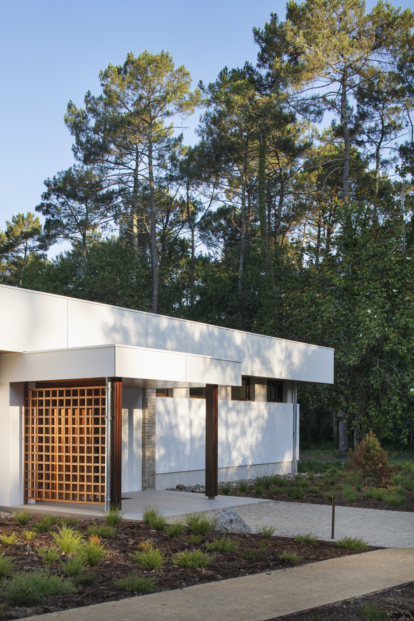 Le projet combine volumes ouverts, matériaux nobles et confort contemporain avec de grandes ouvertures sur la nature environnante.