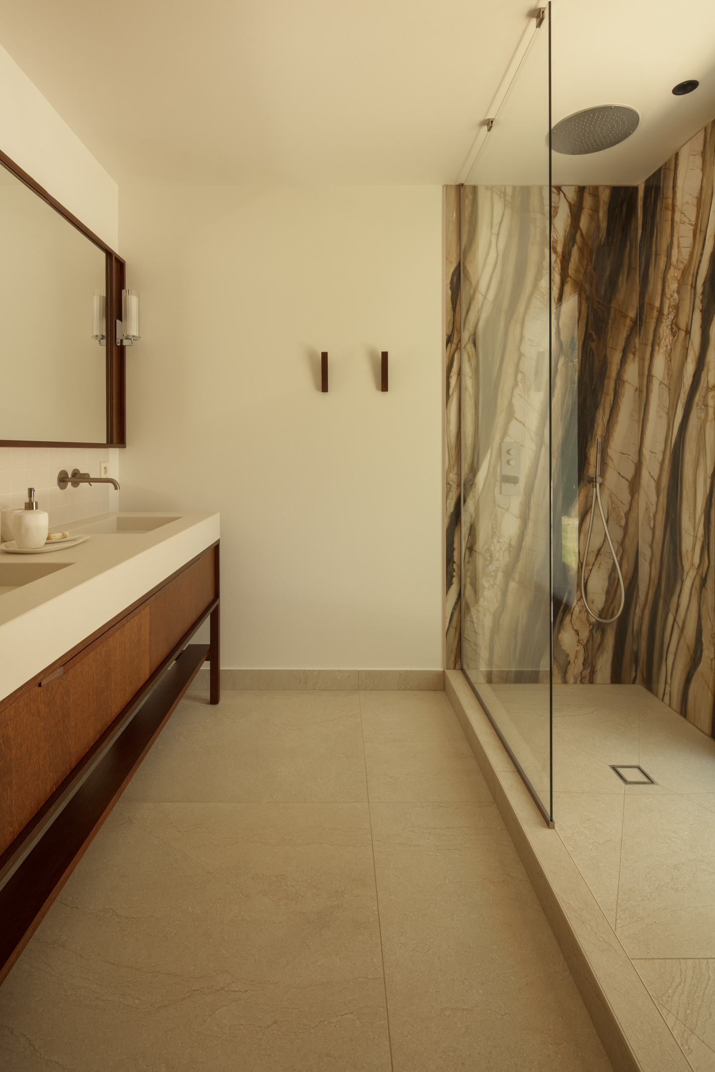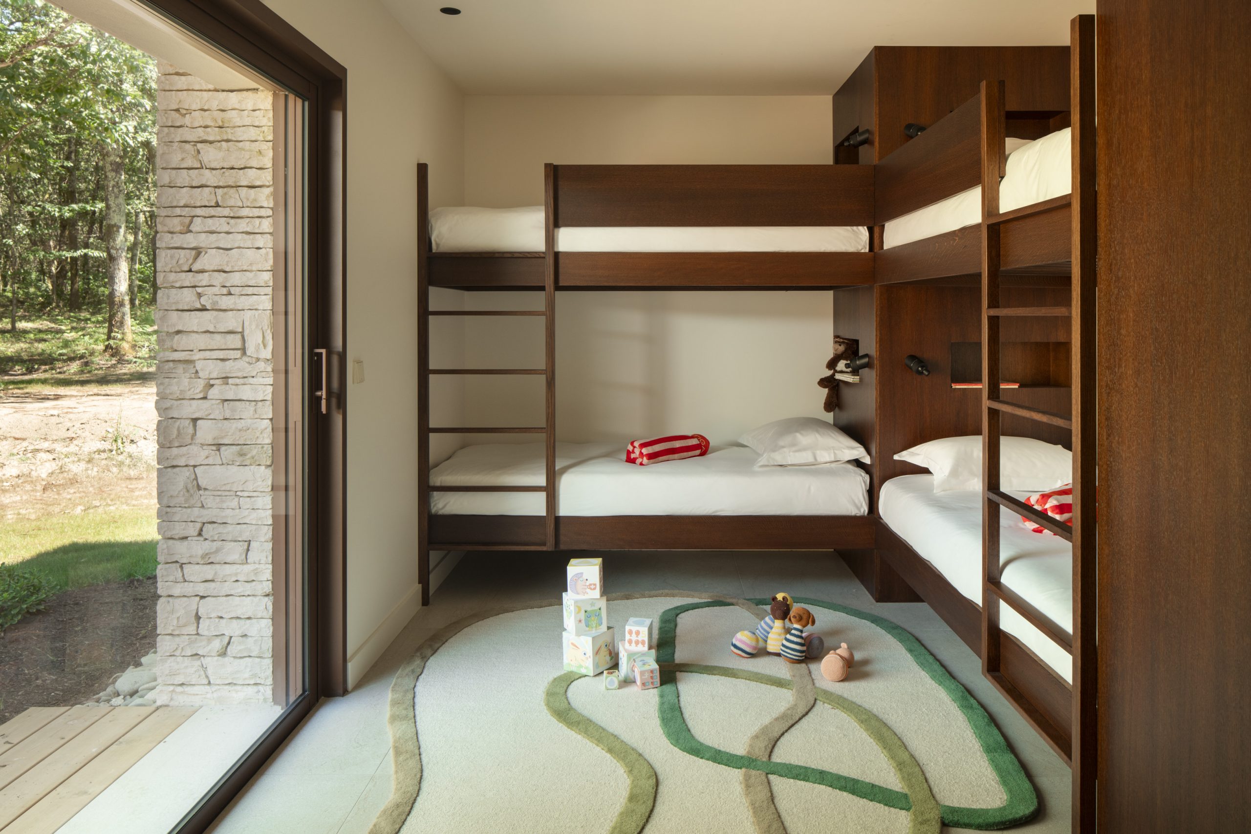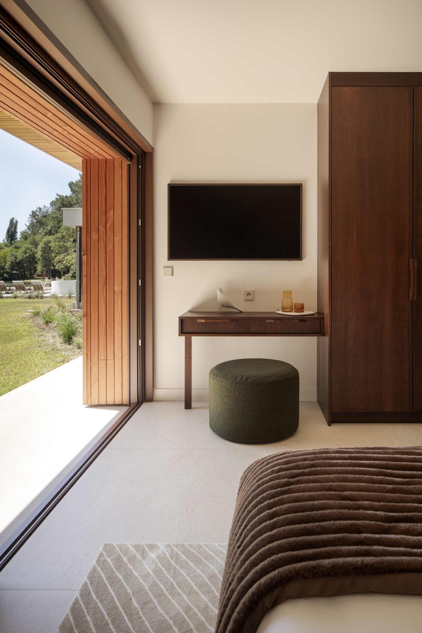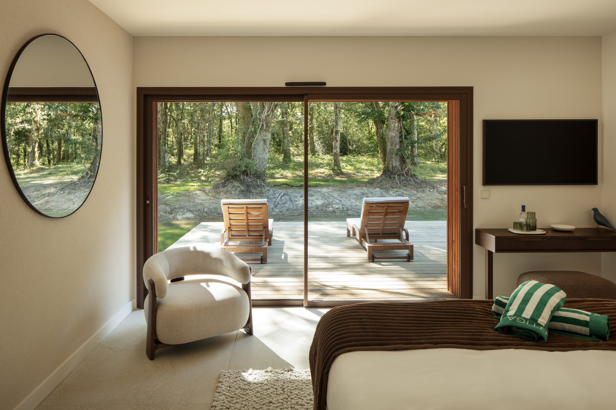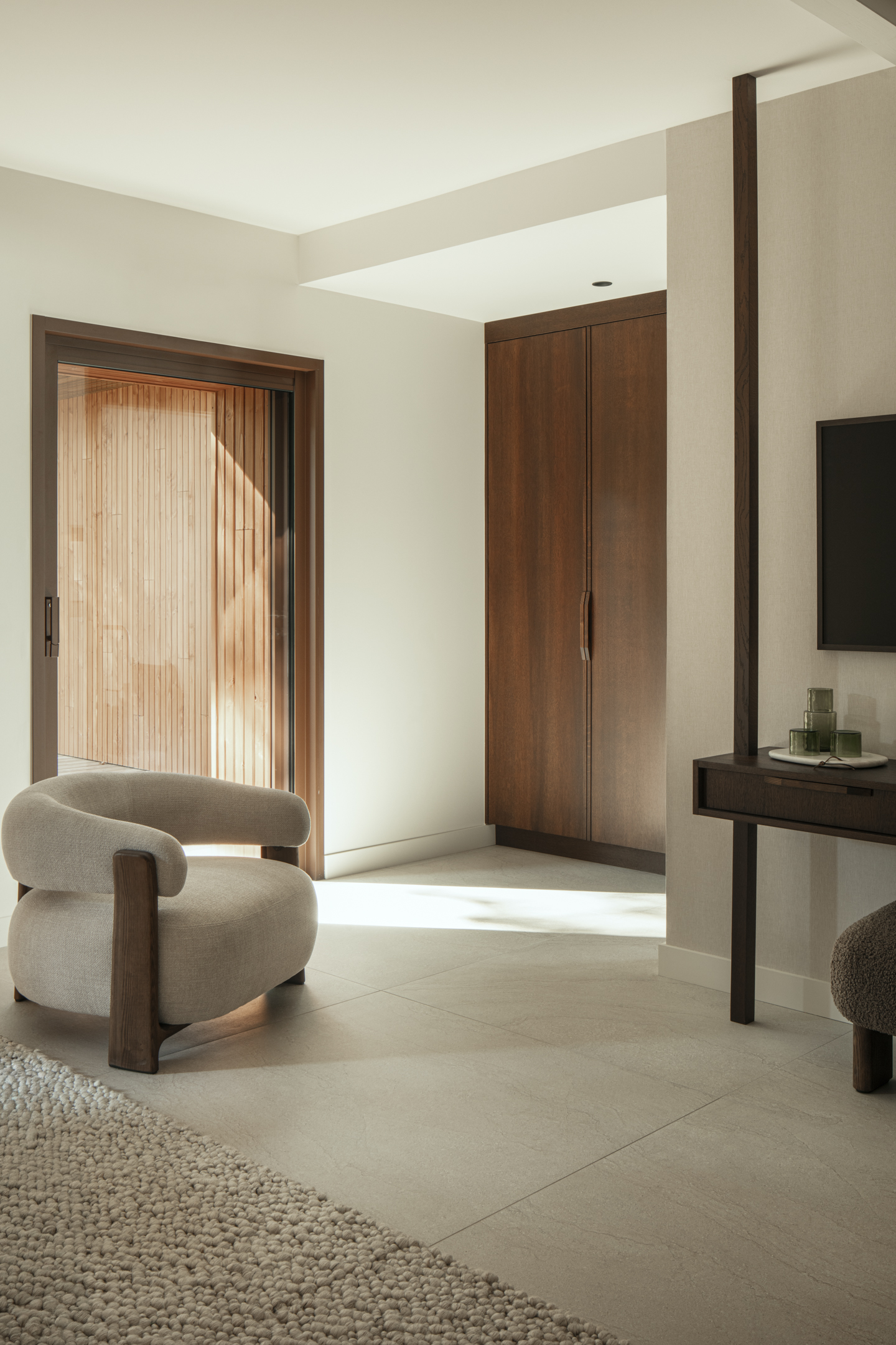 Le projet combine volumes ouverts, matériaux nobles et confort contemporain avec de grandes ouvertures sur la nature environnante.