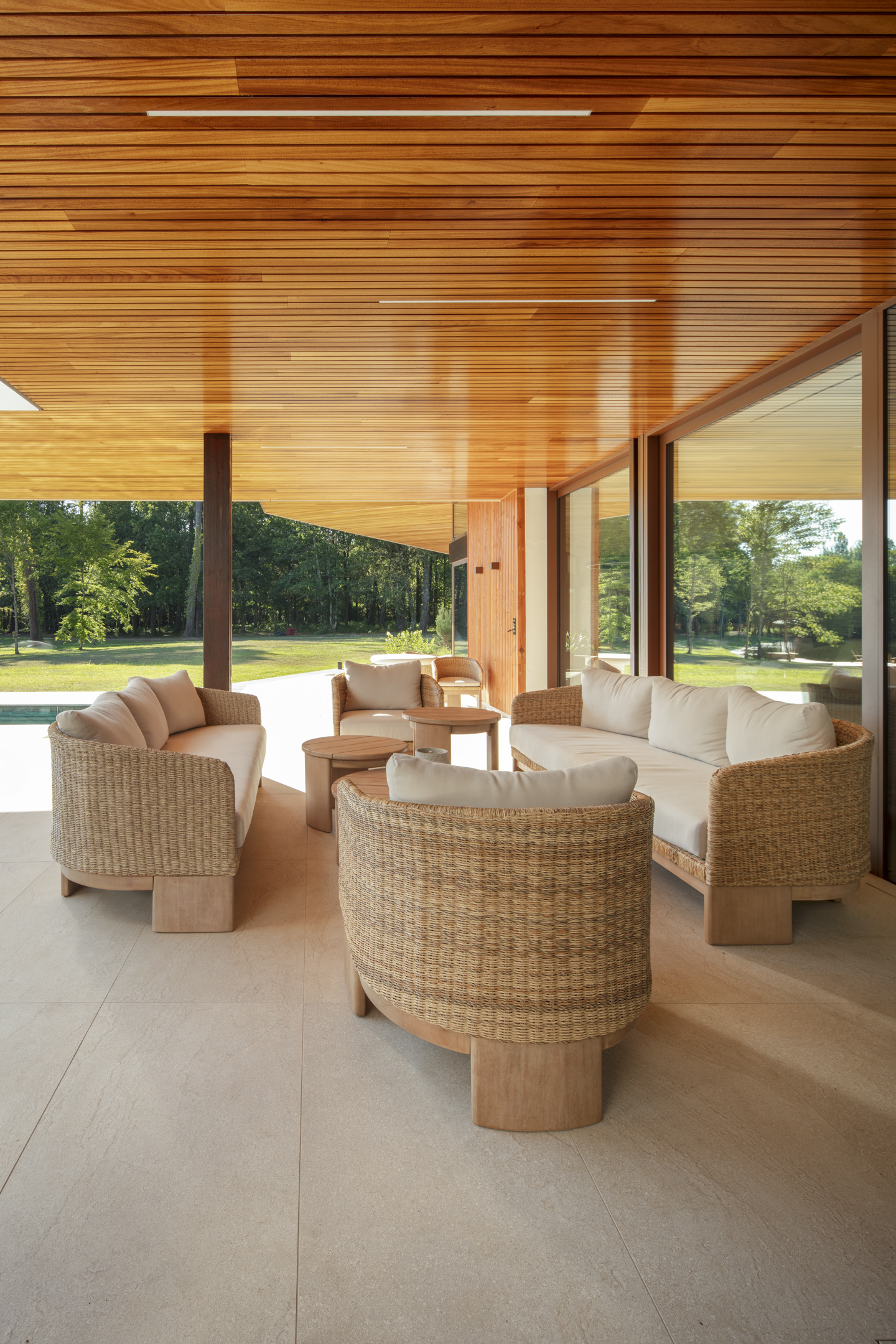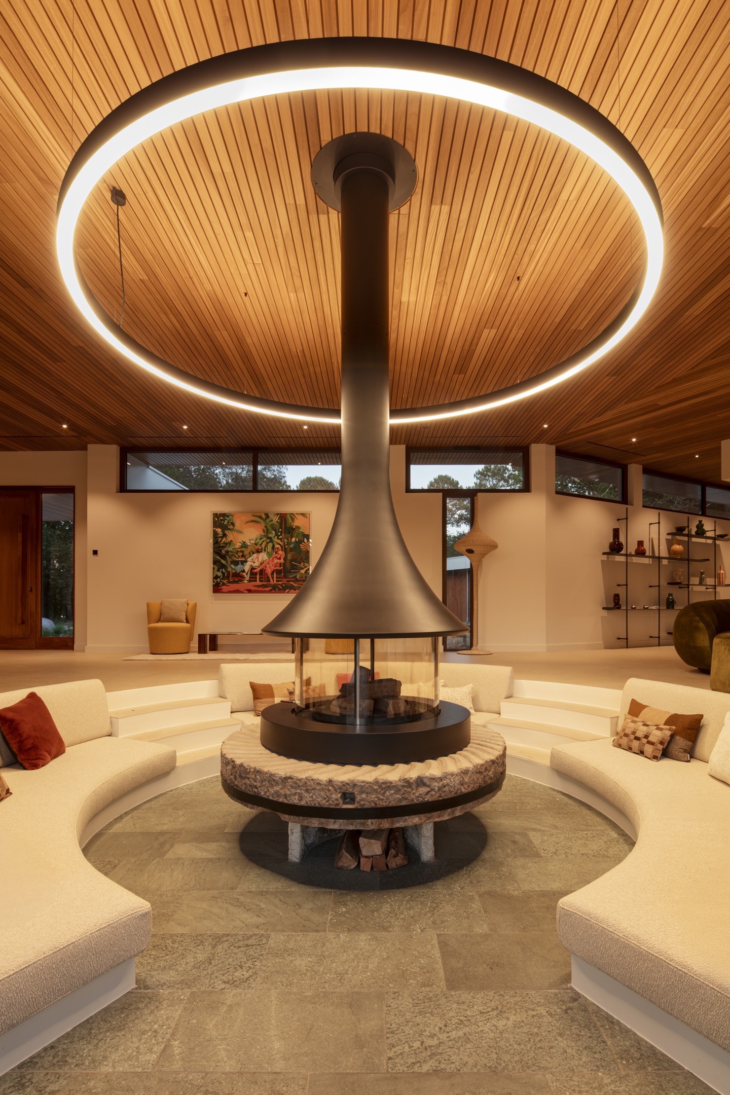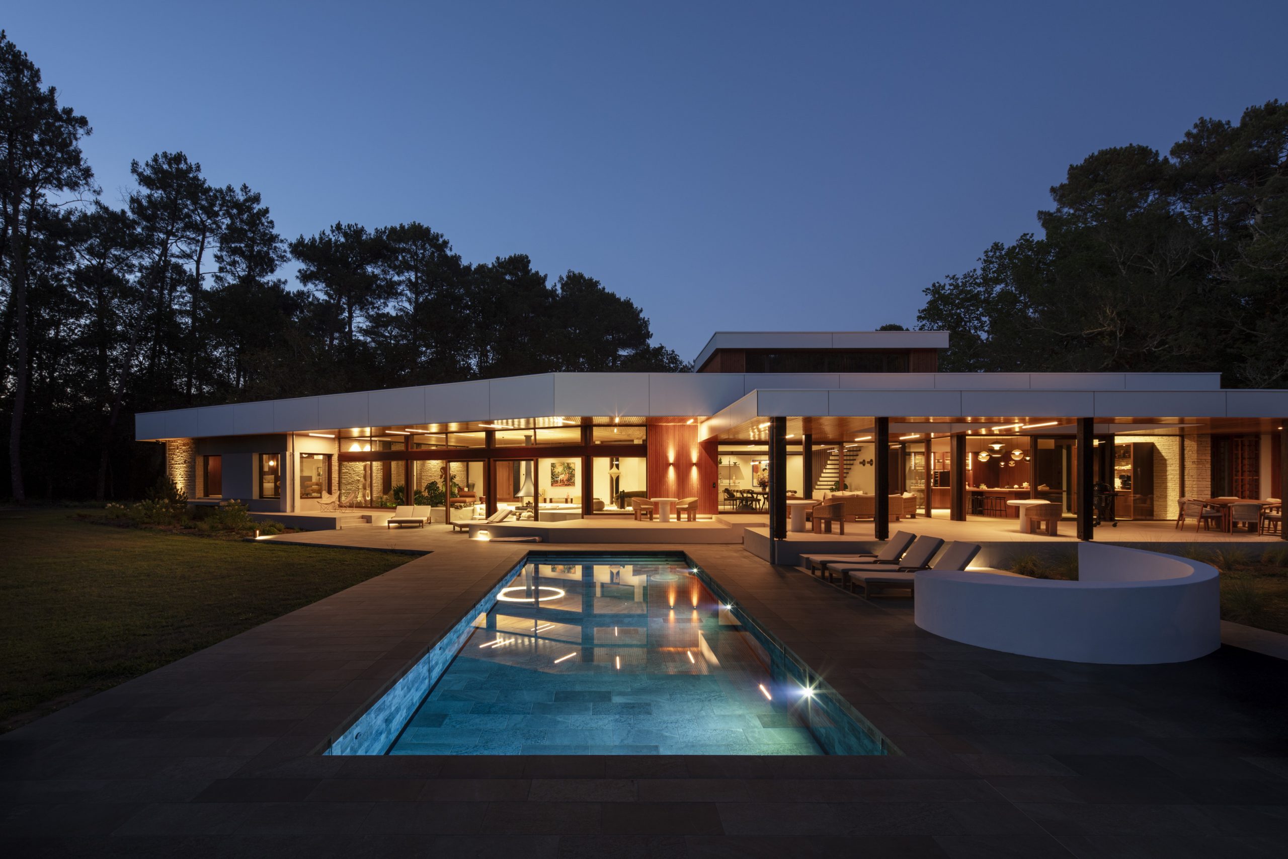 Cette villa emblématique, nichée sur un vaste domaine boisé, a été rénovée pour redonner vie à une maison moderniste inspirée des lignes californiennes des années 70.