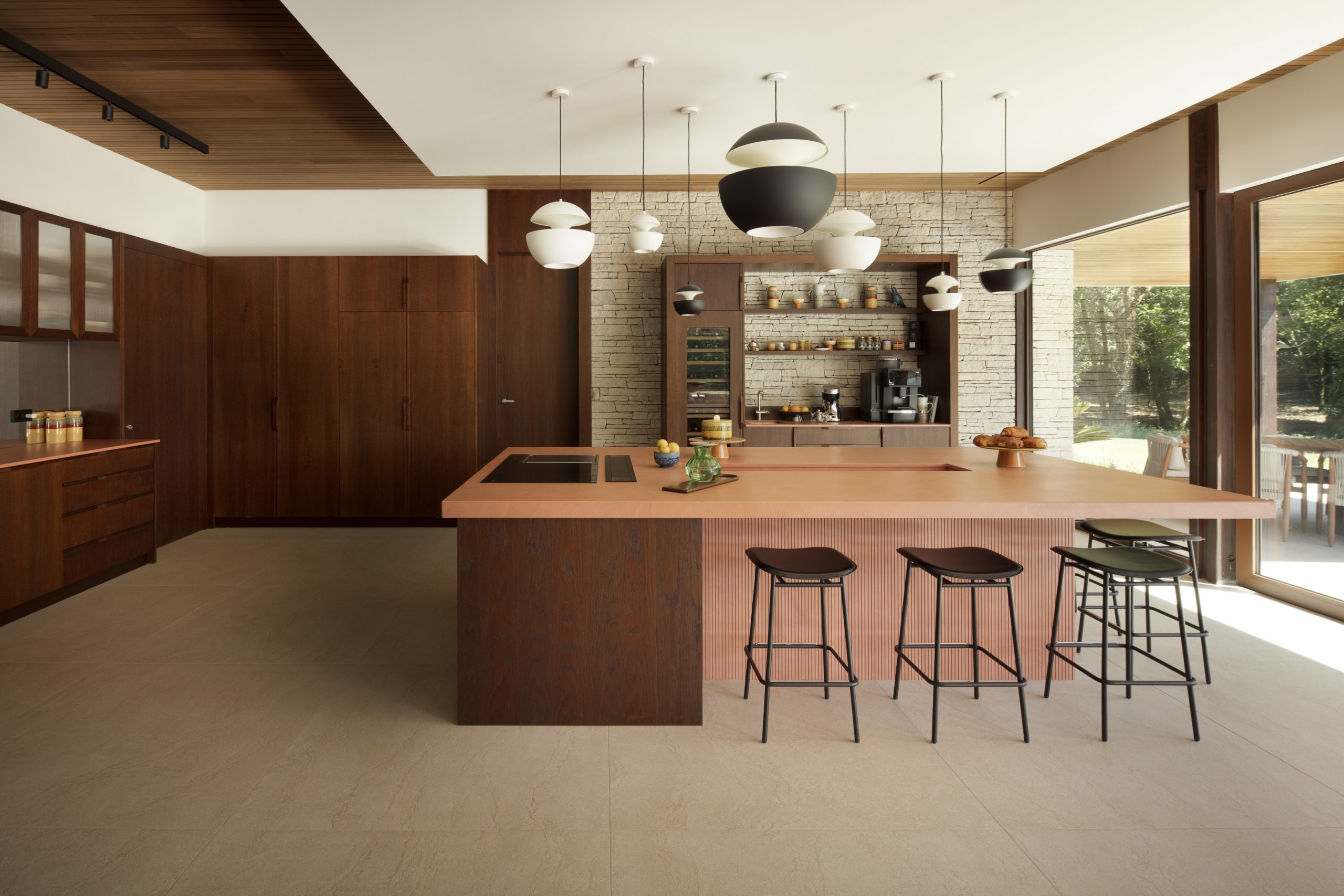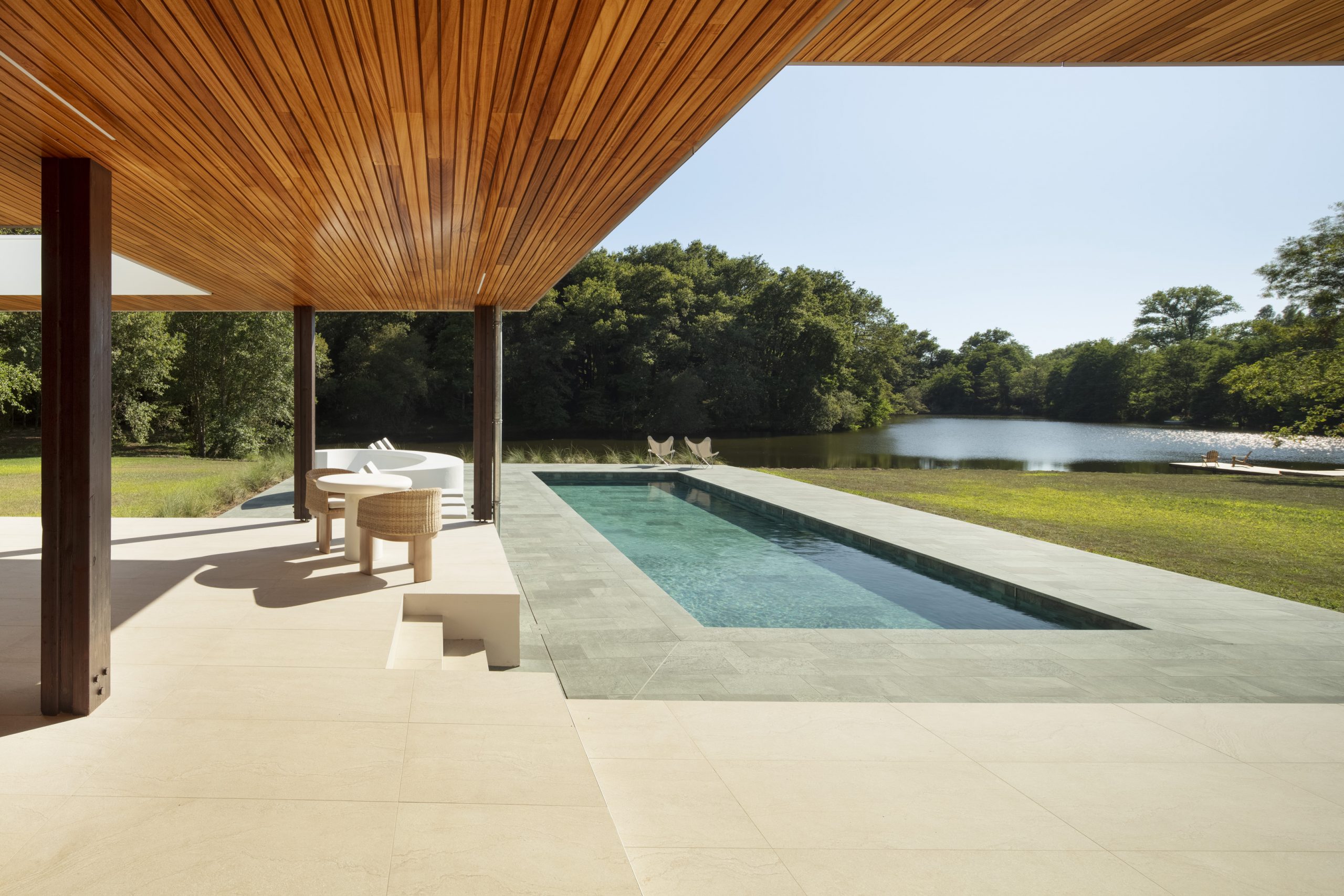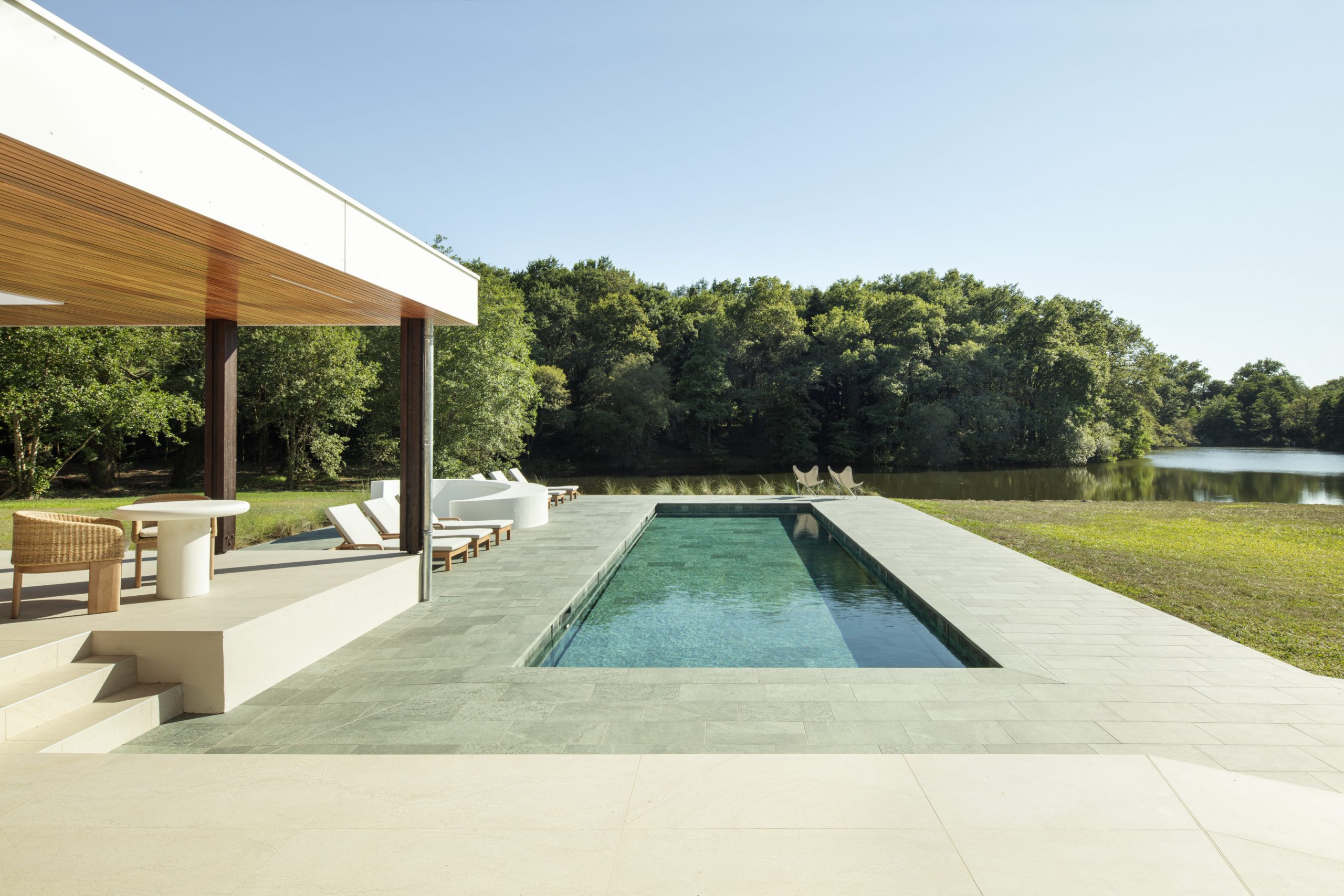 Cette villa emblématique, nichée sur un vaste domaine boisé, a été rénovée pour redonner vie à une maison moderniste inspirée des lignes californiennes des années 70.