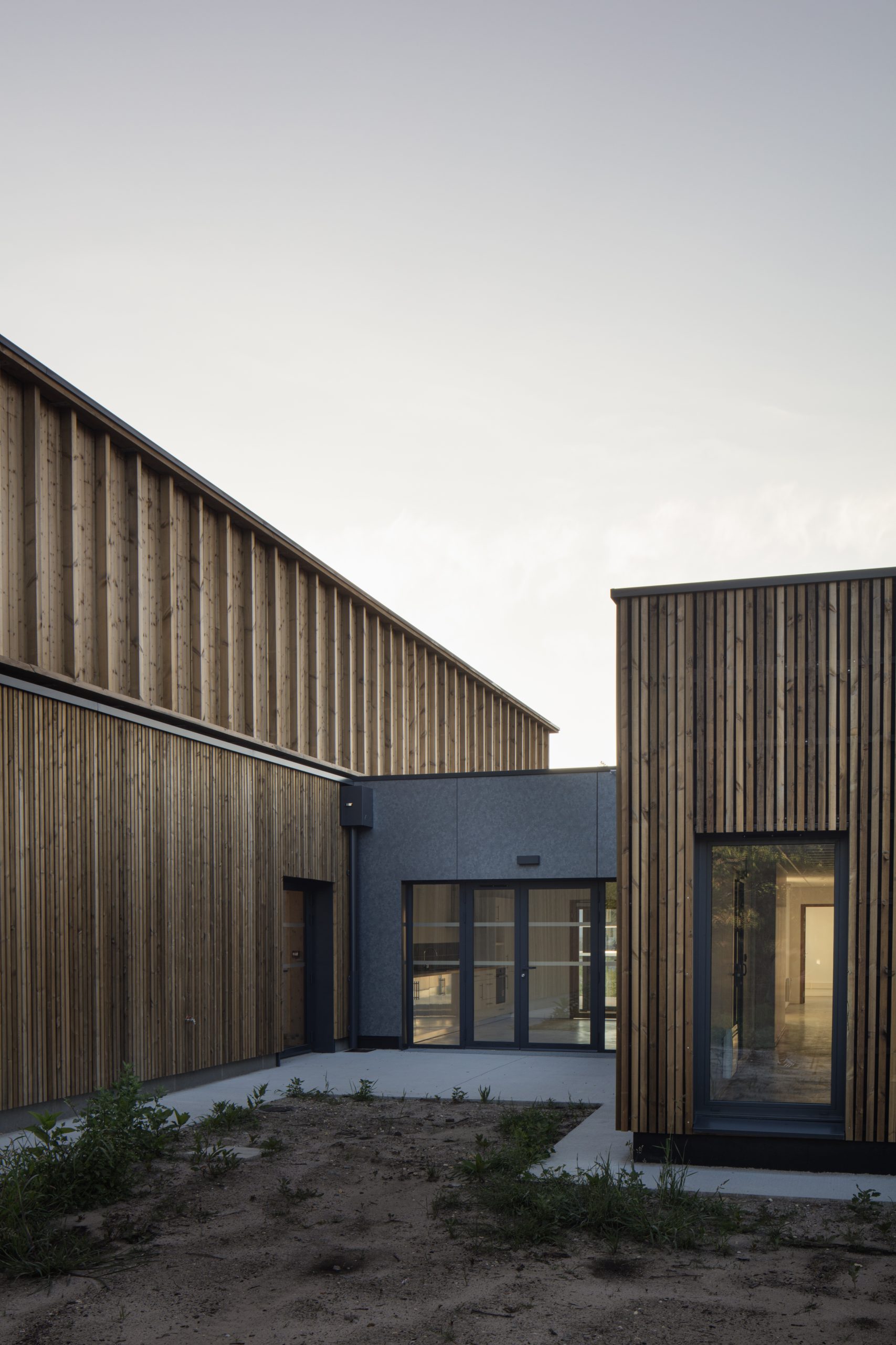 La volumétrie et les matériaux choisis reflètent une écriture contemporaine adaptée aux usages techniques et administratifs.