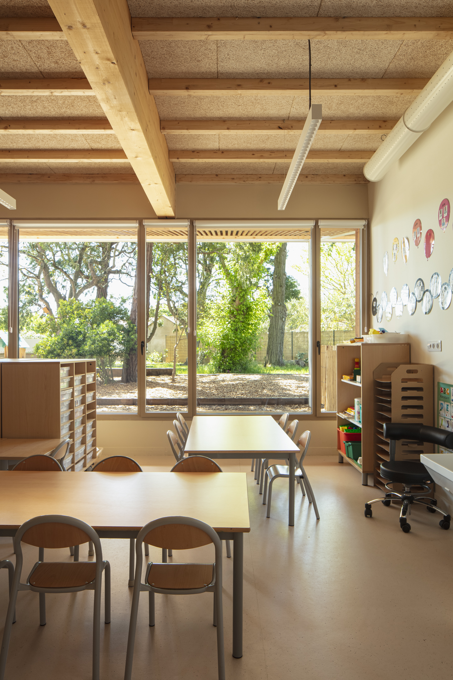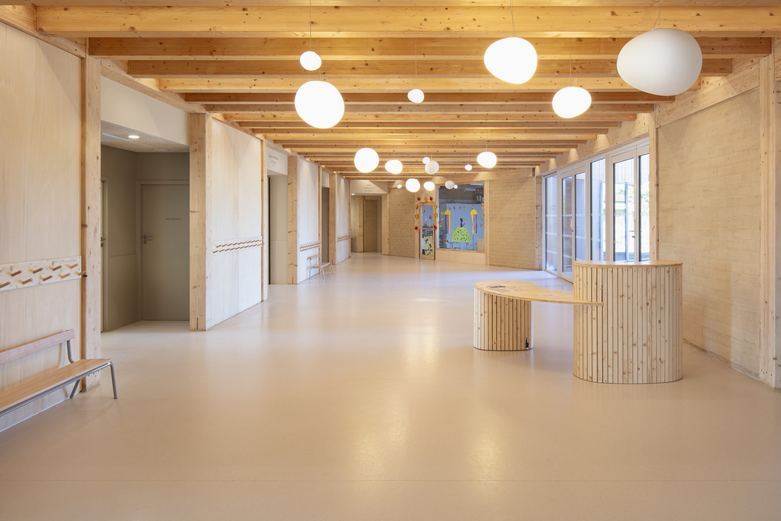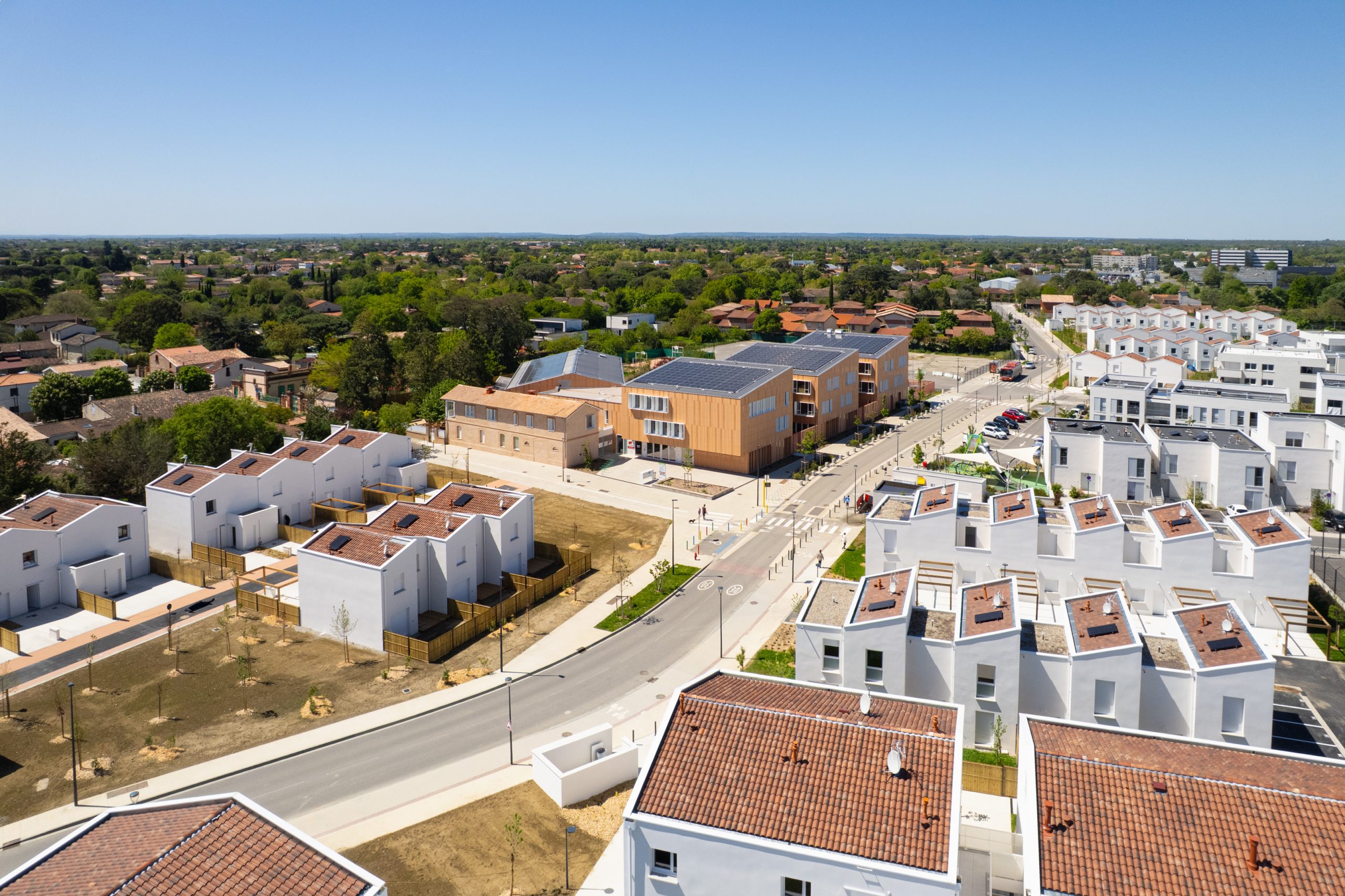 L’architecture mise sur une conception bioclimatique performante et l’usage de matériaux naturels pour un environnement intérieur sain et confortable.