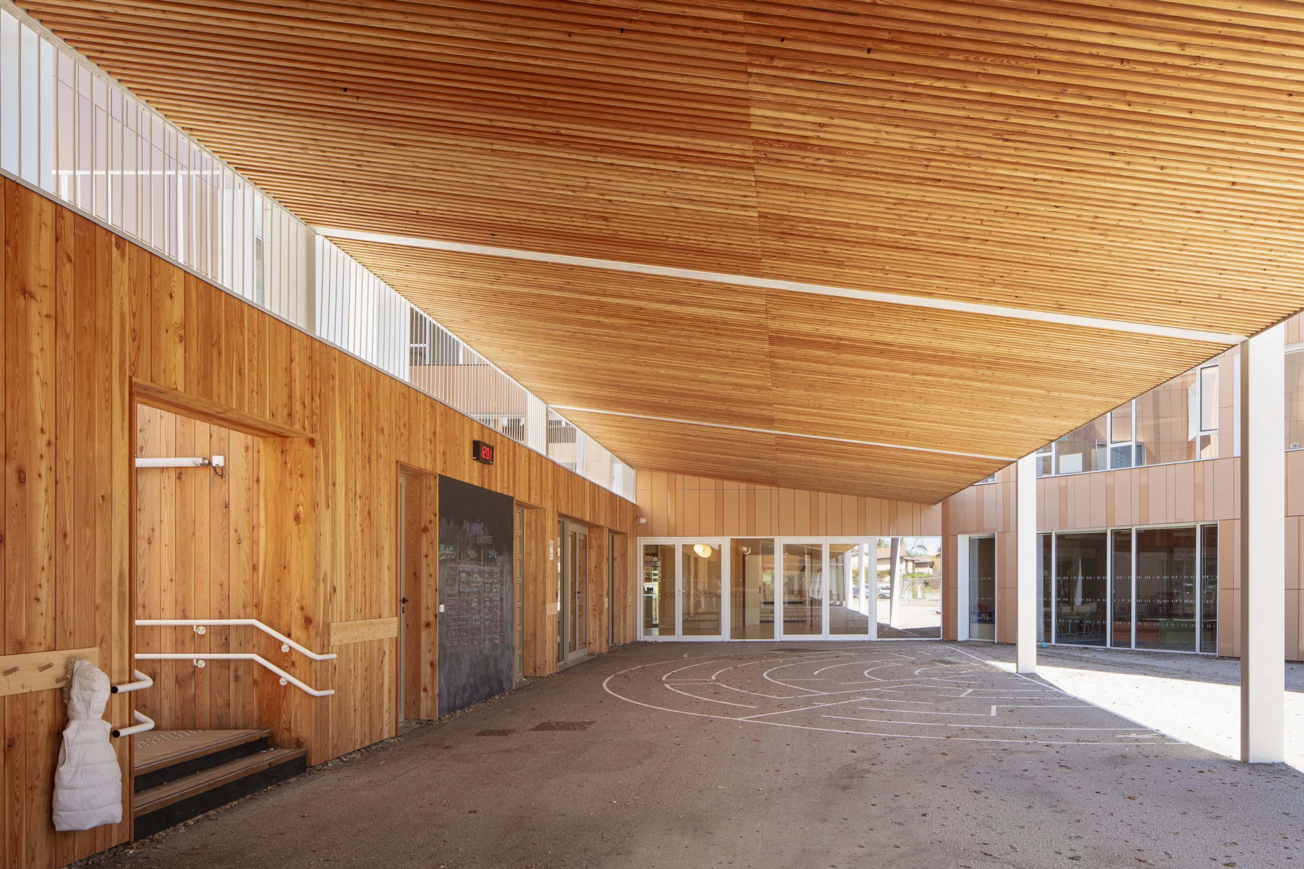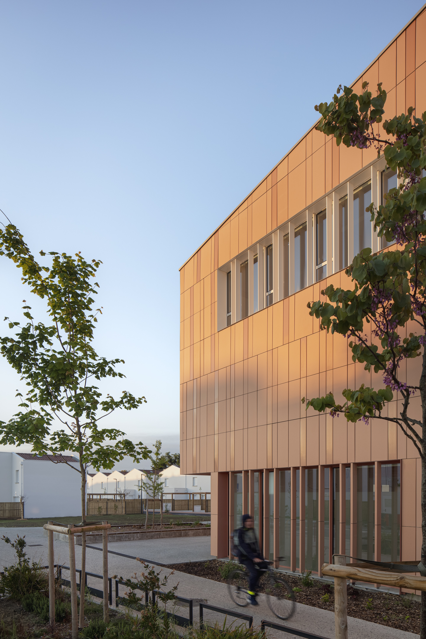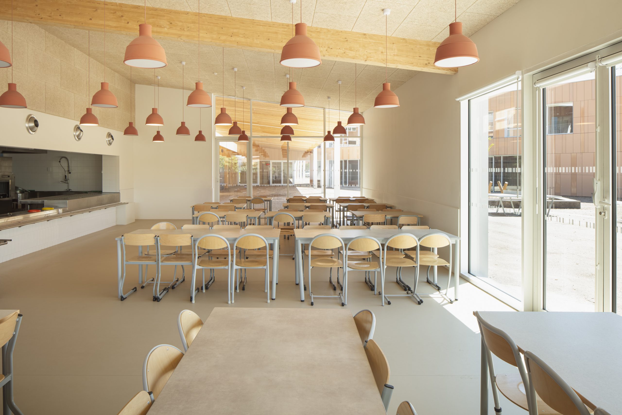 Organisé en pavillons et patios, il offre des volumes à échelle humaine et préserve une lecture apaisée malgré sa grande capacité.