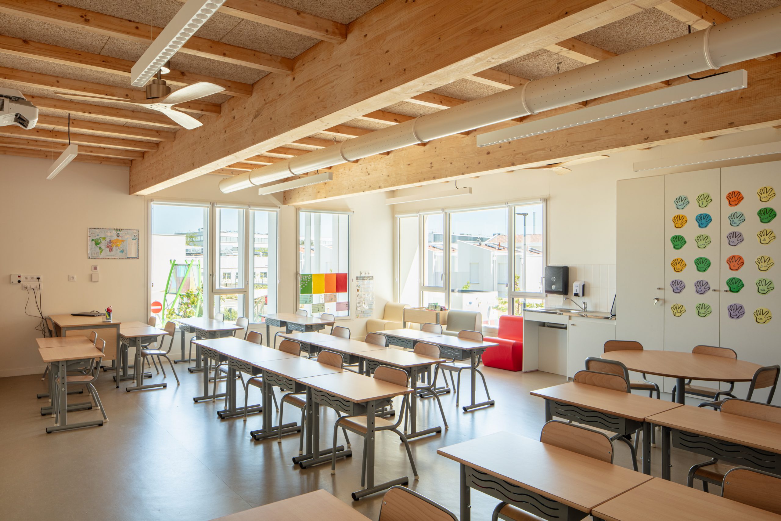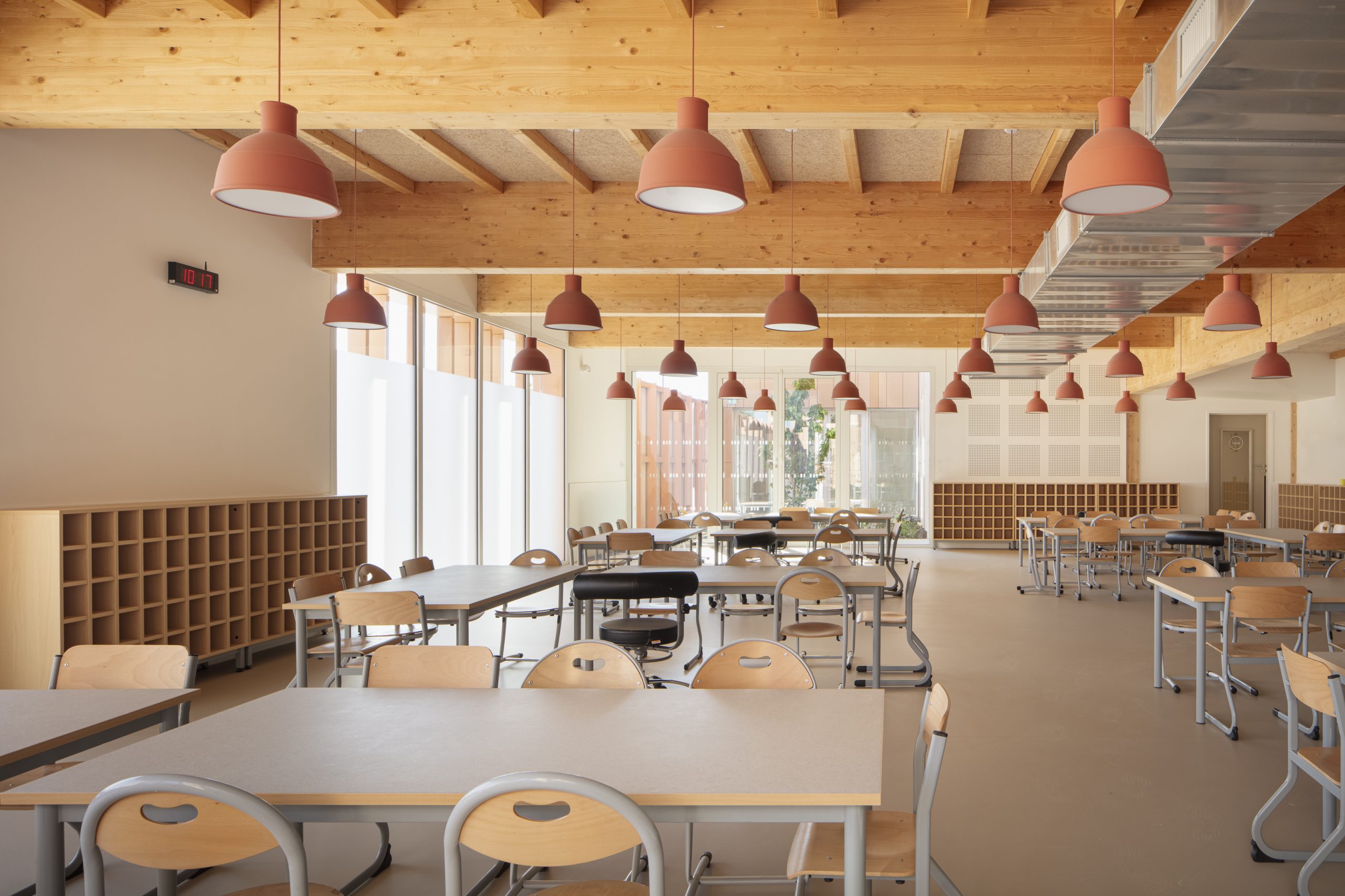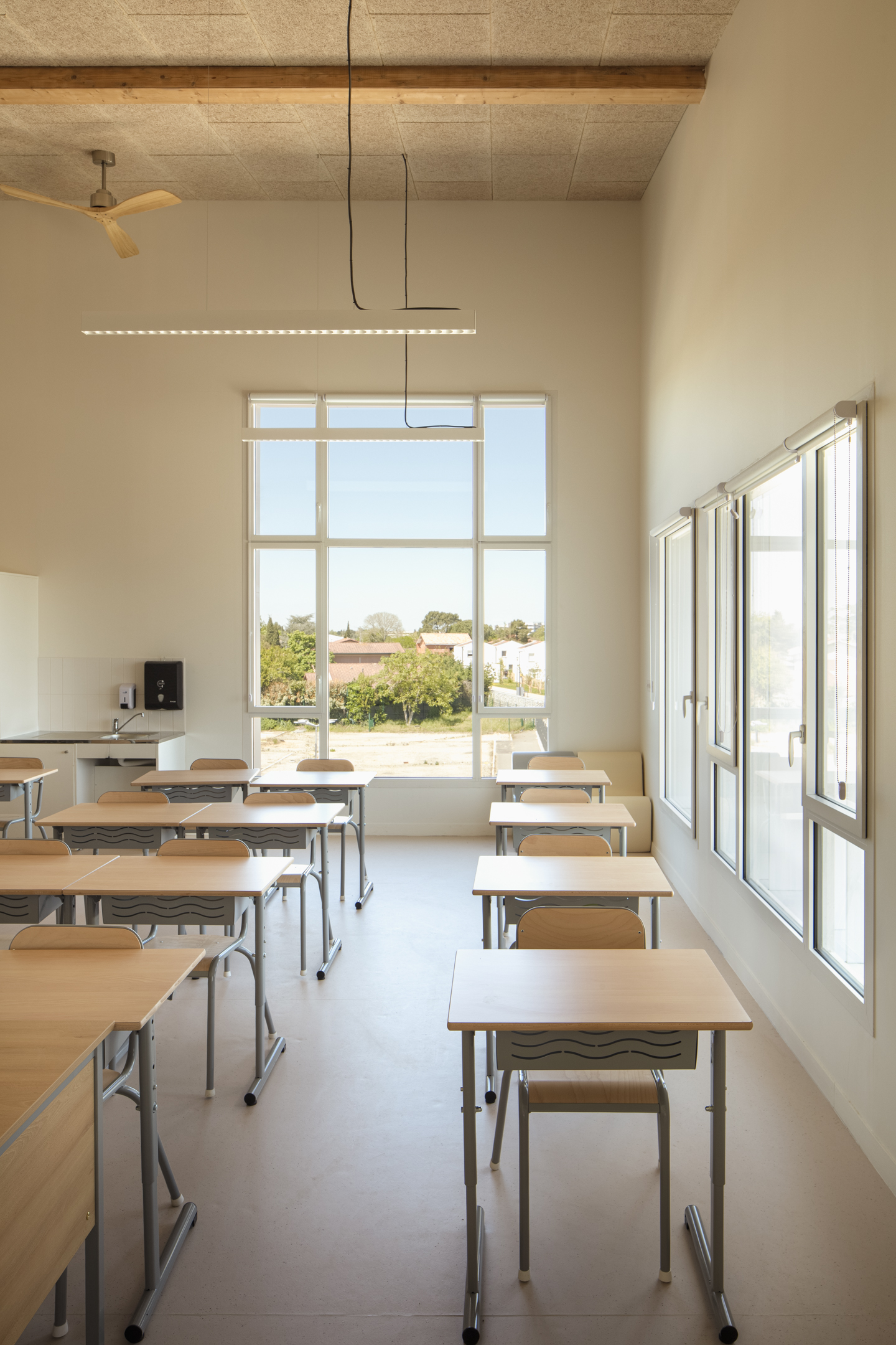 Organisé en pavillons et patios, il offre des volumes à échelle humaine et préserve une lecture apaisée malgré sa grande capacité.